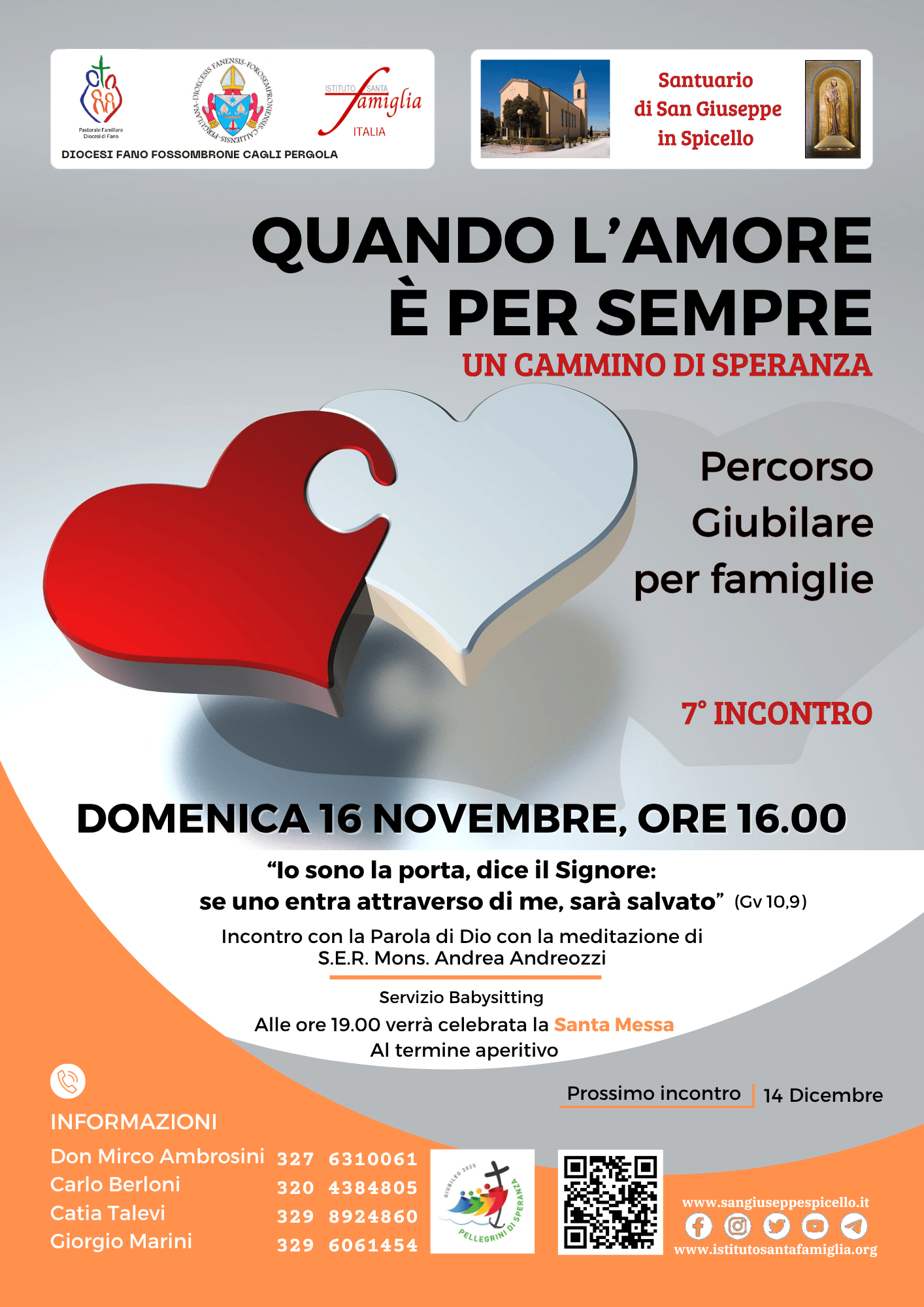 Prosegue il cammino del Giubileo per le Famiglie, realizzato in collaborazione con l’Ufficio Diocesano di Pastorale Familiare dalla Diocesi di Fano-Fossombrone-Cagli-Pergola e l’Istituto Santa Famiglia. Sarà di nuovo presente il Vescovo SER Mons. Andrea Andreozzi