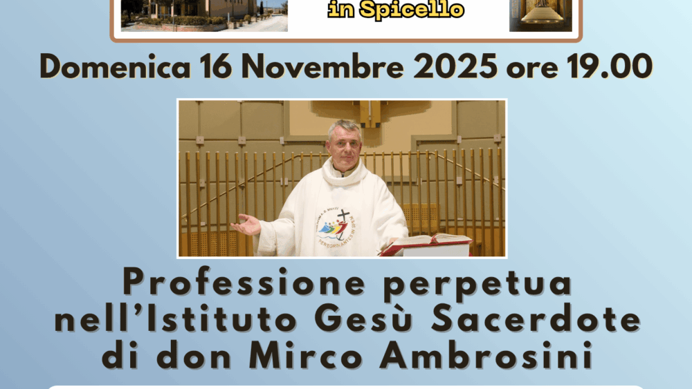Un gesto solenne, una firma apposta su un registro che diventa promessa eterna. Domenica 16 novembre 2025, nel Santuario di San Giuseppe in Spicello in Terre Roveresche (PU), Don Mirco Ambrosini ha pronunciato la sua "Professione Perpetua", consacrando in modo definitivo la sua vita all'Istituto Gesù Sacerdote, uno dei 10... read more →